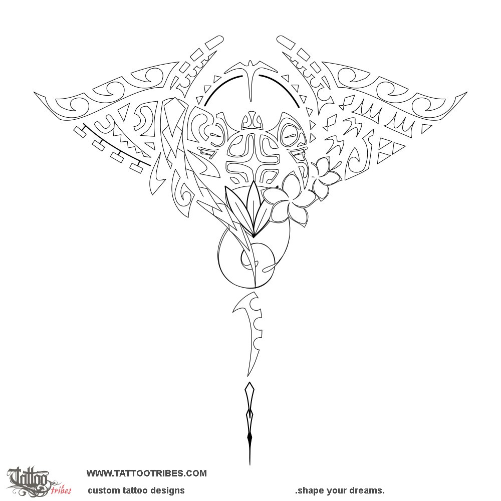 The fish hook is a symbol of prosperity, and the turtle has a Marquesan cross in it for the harmony it brings.
