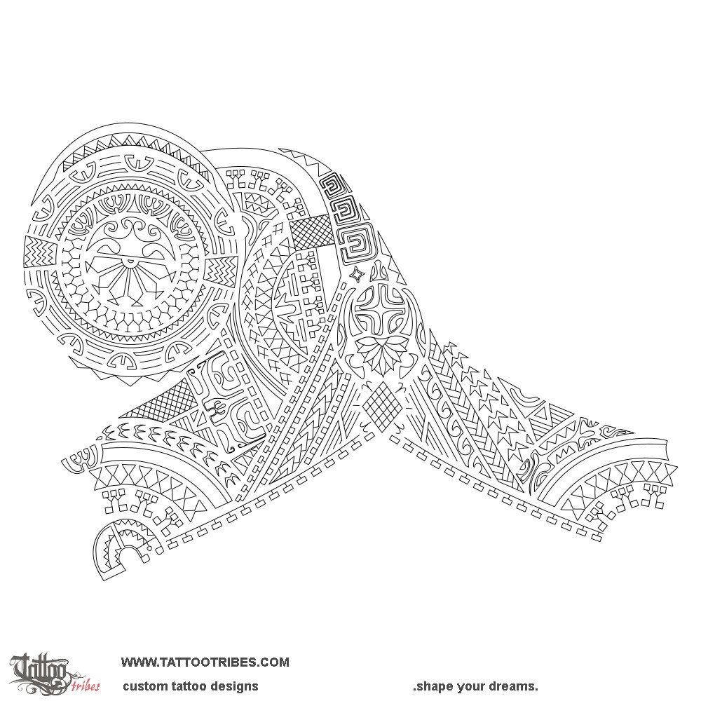 We previously designed a thigh band for Manuel, and extended it now onto the upper leg and buttock, transitioning from the existing style to a mainly Marquesan one.