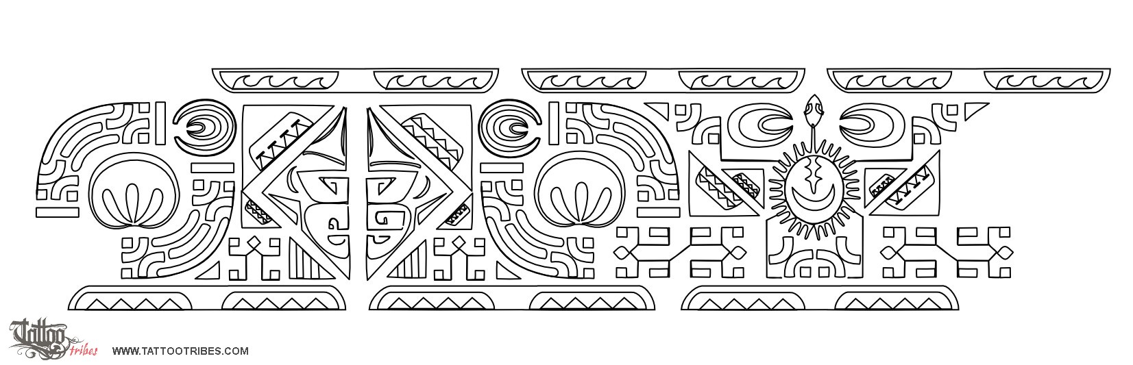 The style of Hiva Oa, which is mainly used in modern Marquesan tattooing is more figurative than the other styles, and it provided some elements that were used in this ankle band, even if we redesigned some of them in order to recall better known symbols: it´s the case of the turtle on the back, with sun and moon on the shell, and of the facing tikis on the front.