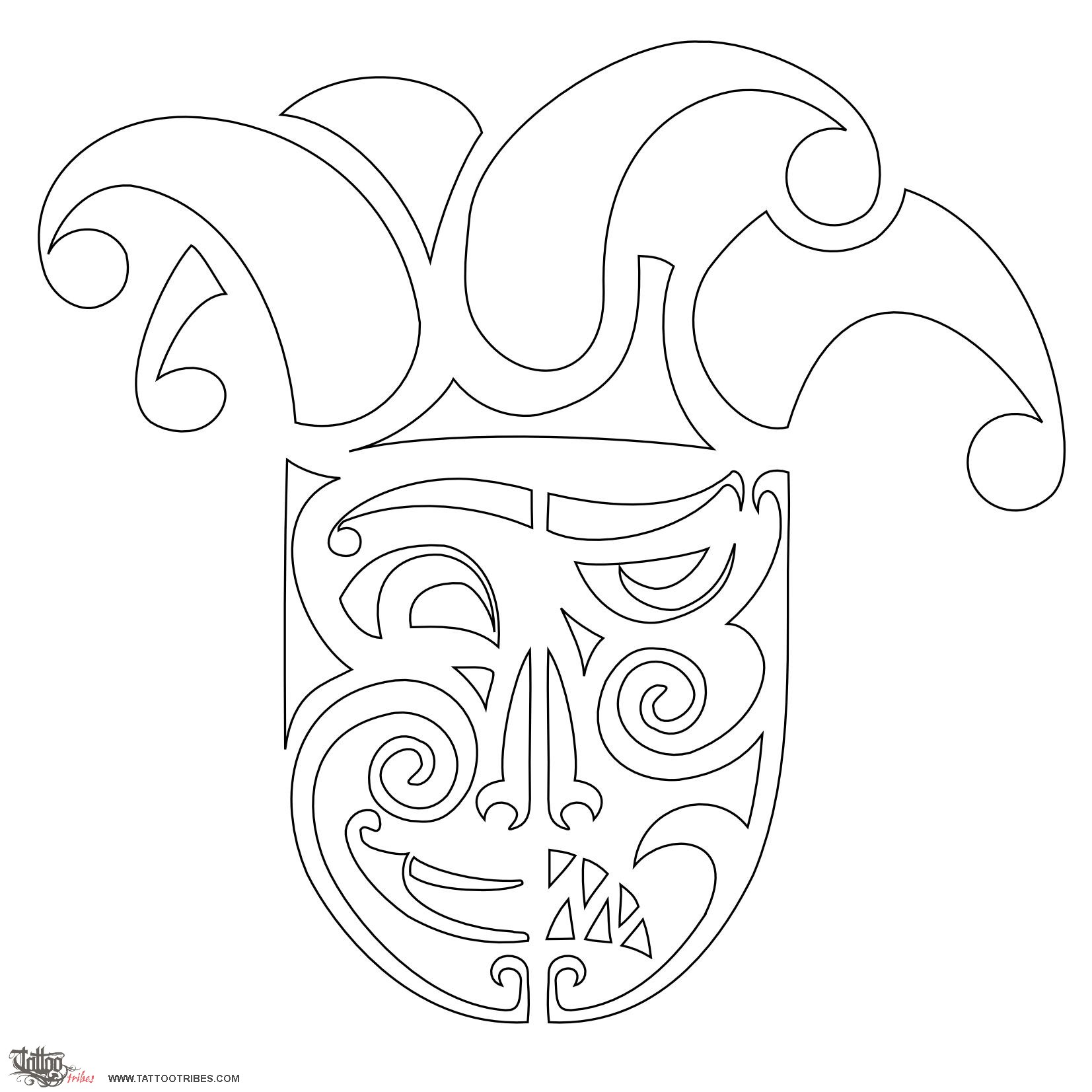 Simone requested a Maori styled joker face, divided in two parts one of which represents good and joy, and the other one evil and sorrow. It is better seen by covering in turn one side and then the other.