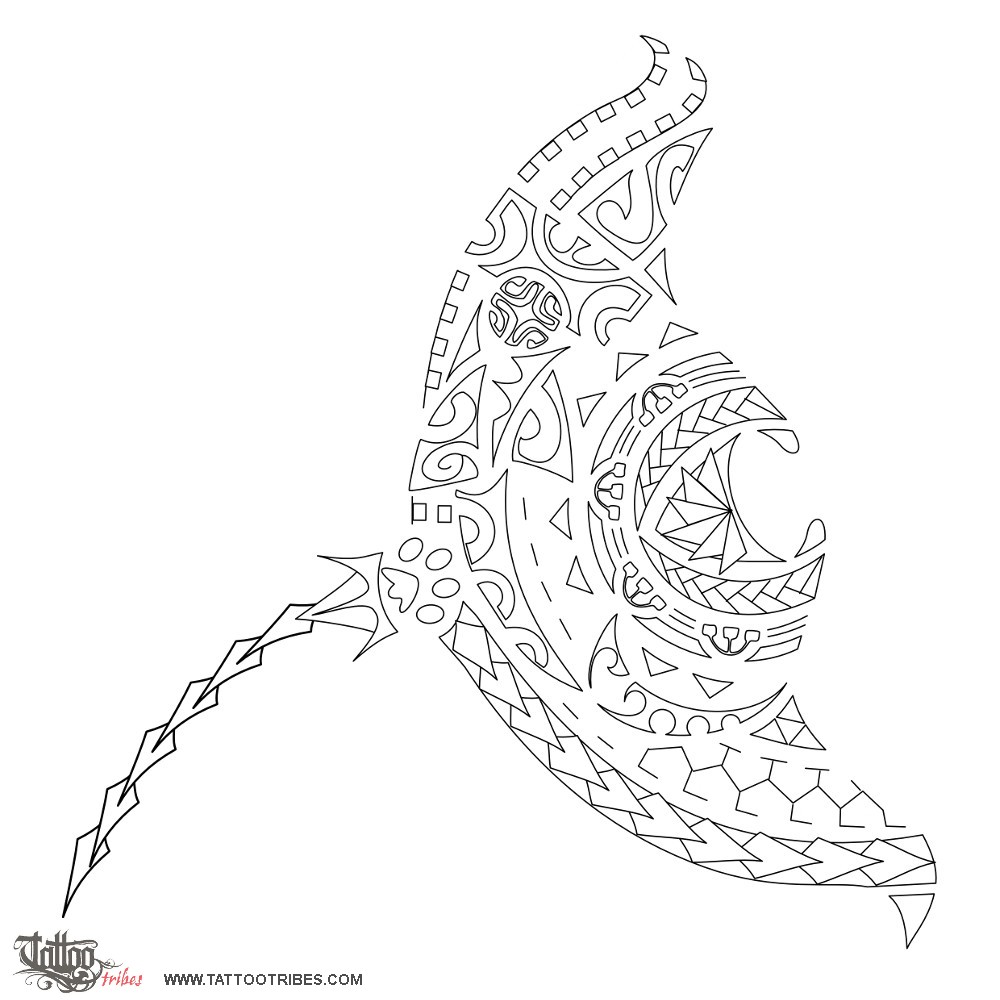 The manta itself is a symbol for beauty and intelligence while the hammerhead shark includes a Marquesan cross for harmony and waves for the ocean.